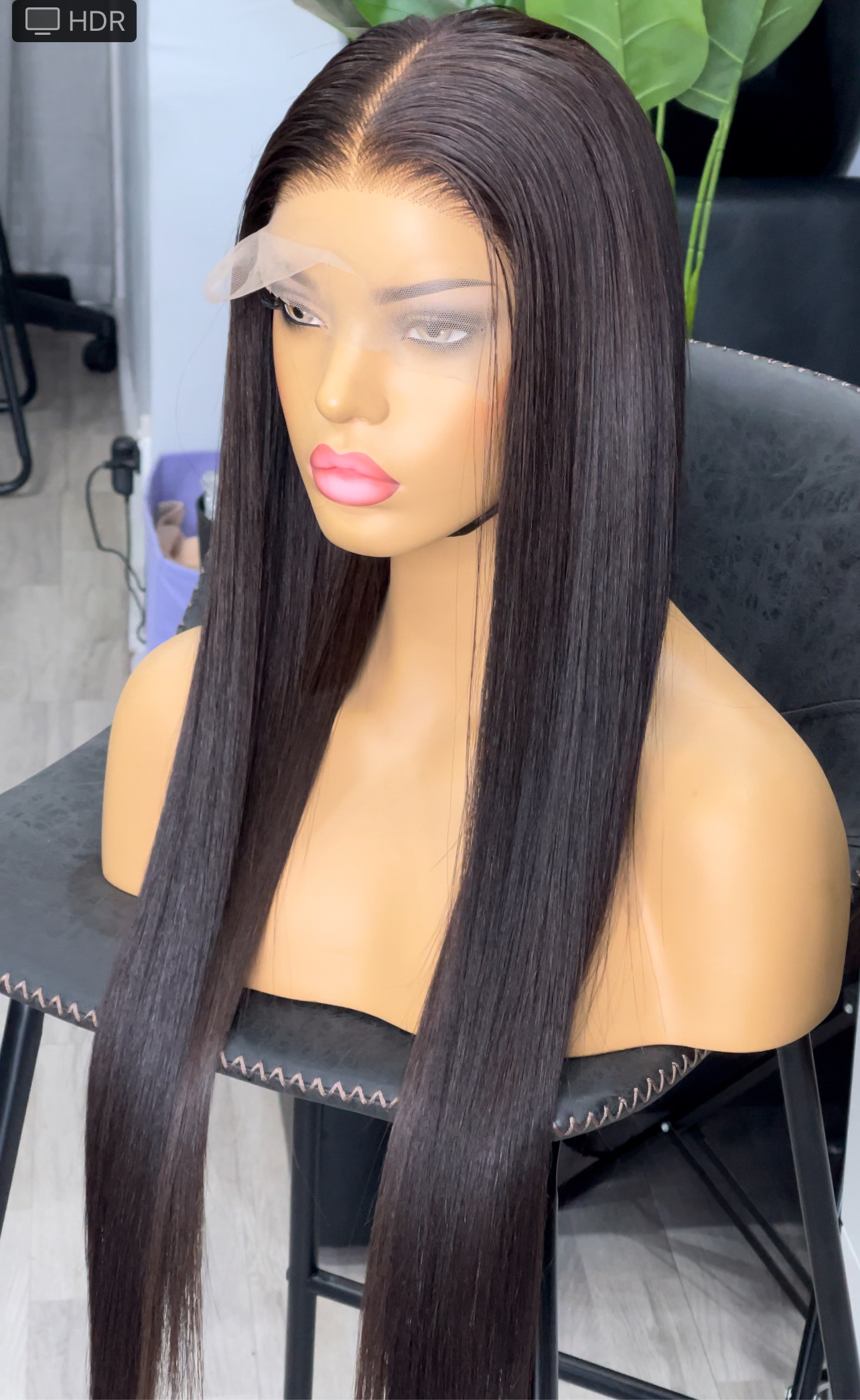 26″ 5×5 Tasha bone straight . Raw human hair